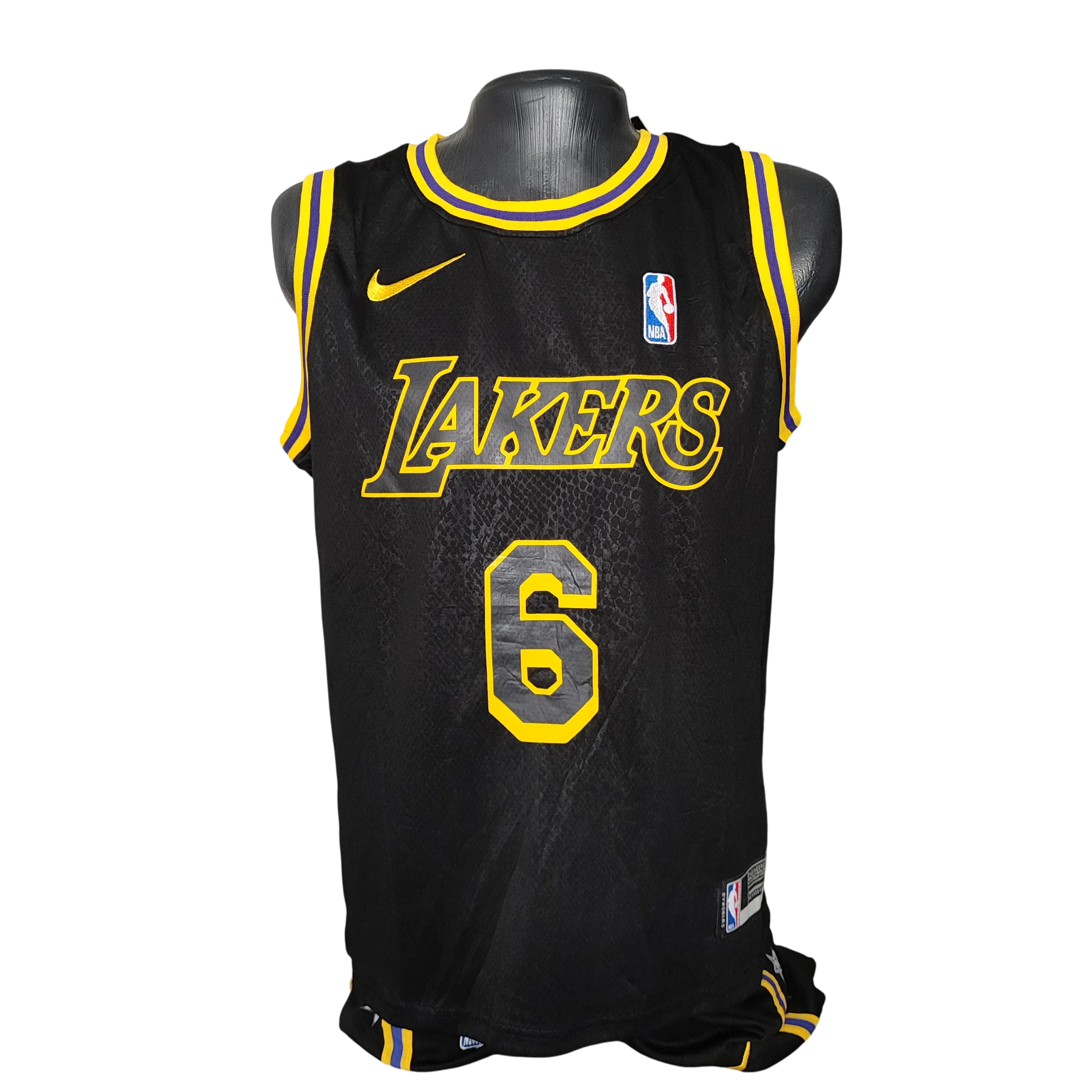 El nombre "Lakers" o "Los Angeles" aparece al frente en letras doradas